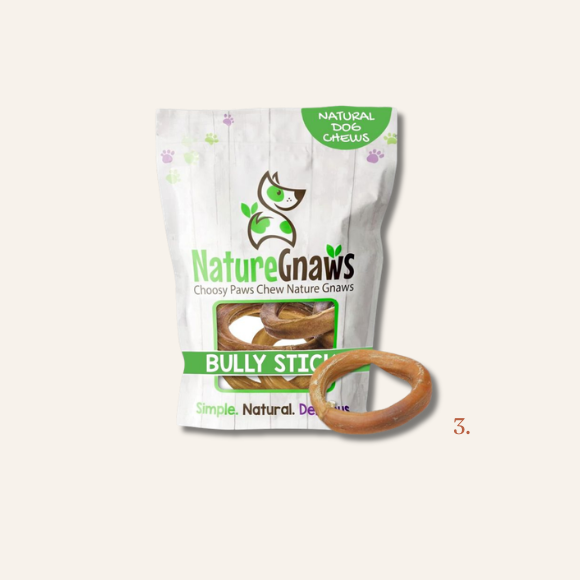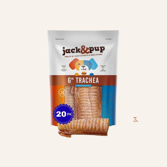 These have a crunchy texture and are usually sourced from sheep or beef cattle. For added enrichment and fun, the hollow middle of these can be stuffed (similar to a puzzle toy) and frozen. Our dogs also like the tracheas from Nature Gnaws and Jack&Pup.