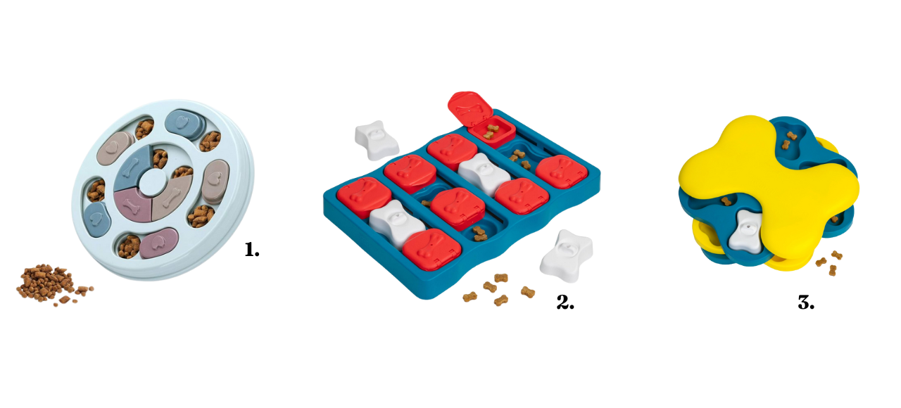 We’ve tried out many different puzzle toys for dogs, but here are some of our favorites: